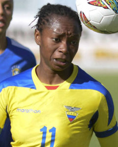Además, fue seleccionada para el equipo de fútbol de Ecuador en 2014, con el cual quedó tercera en la Copa América de Ecuador, clasificó a los Juegos Panamericanos de Toronto 2015 y con posibilidades de clasificarse para el Mundial de Fútbol Femenino de Canadá 2015. La artillera disputó un partido en la Copa del Mundo frente a Japón en la derrota 1-0 y despedida del elenco ecuatoriano.