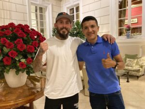 Pero también se dio lija visitando a otros deportistas de primer nivel. En sus redes sociales publicó una fotografía junto a Richard Carapaz. El campeón olímpico se entrena en el país con miras a la Vuelta a España.