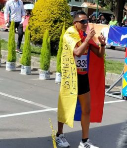 No era nada descabellado y cumplió con su promesa. Pintado se colgó la medalla de oro en los 20 kilómetros marcha en Cochabamba, con un registro de 1 hora, 24 minutos, 56 segundos. Pero la presea dorada no fue todo. Antes de cruzar la meta, uno de los asistentes de la Federación Ecuatoriana de Atletismo le pasó una bandera tricolor. Primero se la amarró en el cuello en forma de capa de superhéroe y una vez confirmado el triunfo la abrió y dejó ver una frase simple, pero cargada de mucho sentimentalismo: “Feliz cumple Karen”, estaba escrito en la parte superior con marcador azul. A los costados estaban dibujados dos corazones y, junto al escudo, los nombres de sus hijos, Nico y Daniel.