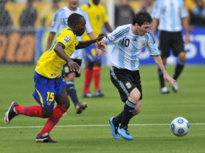 Diego Armando Maradona había asumido el cargo de entrenar de Argentina y Messi tuvo más protagonismo en la selección. Sin embargo, el equipo dirigido por Sixto Vizuete derrotó 2-0 en el Atahualpa con dos golazos de Wálter Ayoví y Pablo Palacios. El jugador del FC Barcelona pasó desapercibido: erró una clara opción de gol y no tomó el mando para cobrar el penal que lo remató Carlos Tévez y fue atajado por Marcelo Elizaga.