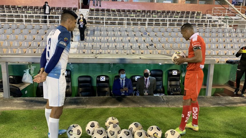 Los capitanes Eddie Guevara (Técnico Universitario) y Argenis Moreira (Manta FC) firmaron el acta de presentación y el comisario Juan Carlos Pico decidió suspender el compromiso.