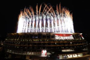 Una de las protagonistas fue Arisa Tsubata, enfermera y boxeadora japonesa, quien no podrá competir debido a que su preolímpico fue suspendido por la pandemia. Sin embargo, hoy tuvo su merecido homenaje. Tras ingresar con el número 21 en su espalda, comenzó una cuenta regresiva para dar inicio a los fuegos artificiales que iluminaron toda la ciudad.