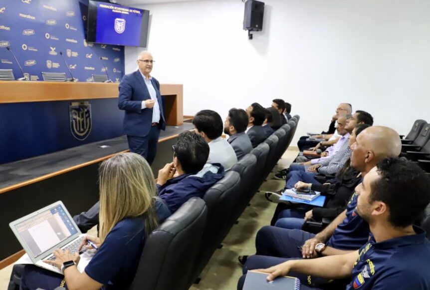 Antonio Cordón dialogó con los entrenadores de las formativas de Ecuador